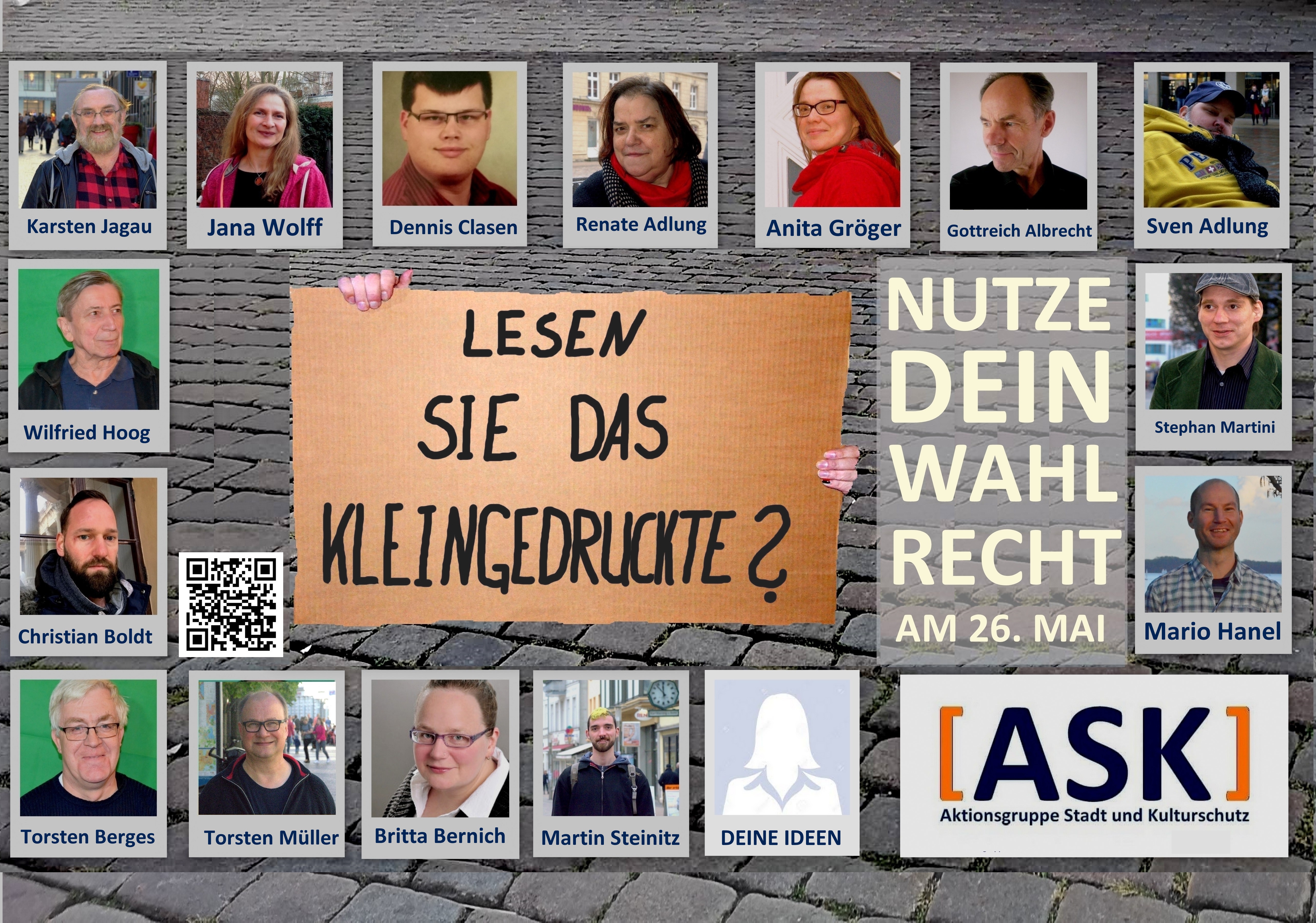 Wie bei der echten Kommunalwahl am 26. Mai 2019 hast Du/ haben Sie 3 Stimmen die auf die Kandidatinnen und Kandidaten verteilt werden können. Mehr Informationen zu den Kandidatinnen und Kandidaten findest Du bei Smartphones unten, bei Tablet und PC auf der rechten Seite. oder einfach hier klicken: https://aktionstadtundkulturschutz.com/kandidatinnen-und-kandidaten-zur-wahl-am-26-mai-2019/ Die Umfrage ist natürlich nicht repräsentativ … Die 15 wichtigsten Kandidatinnen und Kandidaten zur Wahl in Schwerin. weiterlesen