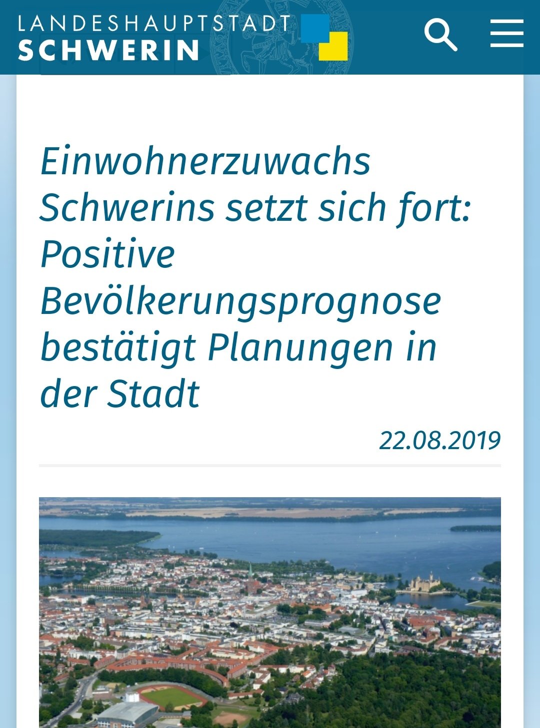 Hier die aktuelle Pressemeldung der Stadt, dass Schwerins Bevölkerung wächst: