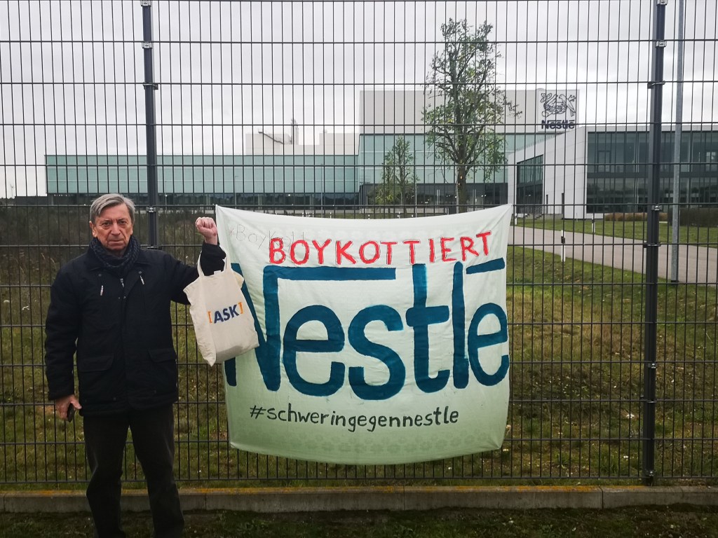 Am heutigen Samstag haben Aktivisten der Aktionsgruppe Stadt und Kulturschutz eine kleine Protestaktion vor dem Nestlé Werk durchgeführt.