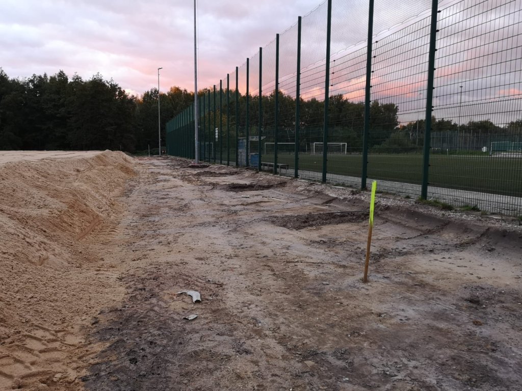 Der Bau hatte sich anfangs zeitlich verzögert, doch nun ist er im vollen Gange. Was jedoch sofort ins Auge sticht – der Platz liegt deutlich höher. Es wurde viel Sand angekarrt. Das zweite was Beobachtern auffällt, eigentlich sollten an der Stelle mal 2 Plätze „quer“ entstehen. Nun ist dort ein Platz „längs“.