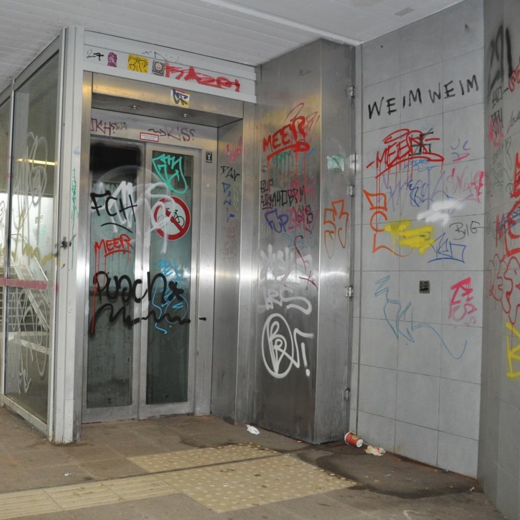 Seit Jahren ist die Unterführung kaum nutzbar. Die Fahrstühle sind zu klein für Fahrräder, fielen ständig aus, und seit den Starkregeneieignissen, in denen die gesamte Unterführung bis an die Decke geflutet war, gab den Mini-Aufzügen den Rest.