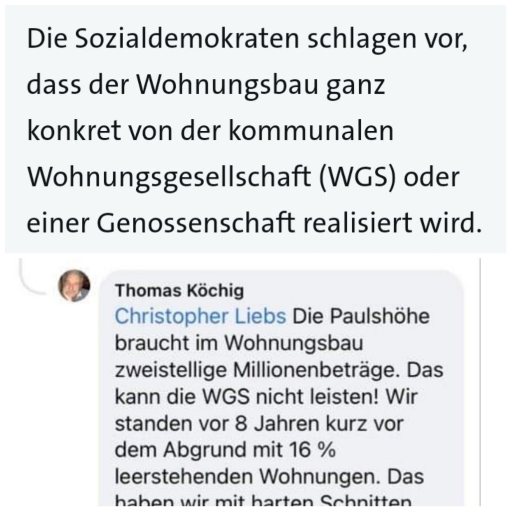 „Die Sozialdemokraten schlagen vor, dass der Wohnungsbau ganz konkret von der kommunalen Wohnungsgesellschaft (WGS) oder einer Genossenschaft realisiert wird.“ schreibt die SPD in einer Pressemitteilung auf ihrer Internetseite.