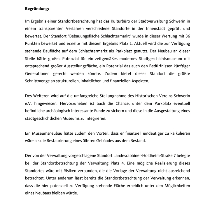 Wir freuen uns sehr darüber dass Schwerin echte, glaubwürdige Schritte in Richtung eines Stadtgeschichtsmuseums geht.