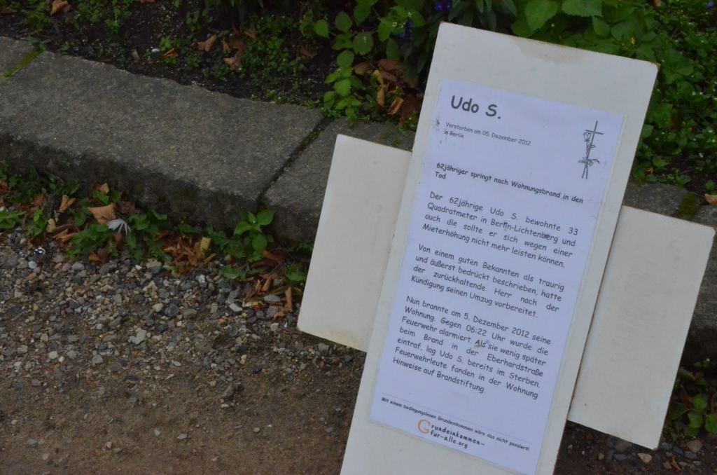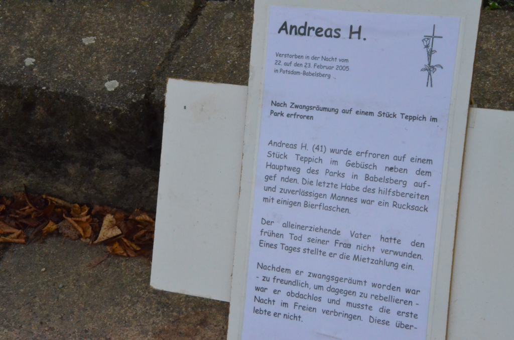 „Mit der Aktion möchte ich nicht nur auf die immer schlimmer werdende soziale Kälte in unserer Gesellschaft aufmerksam machen, die u.a. auch immer stärker von den Behörden (u.a. in Form von struktureller Gewalt) ausgeht, sondern auch auf meine eigene unsägliche Wohnungssituation. Seit über einem Jahr versucht mich das Sozialamt um jeden Preis in die Obdachlosigkeit zu treiben und bedient sich dabei sehr fragwürdiger Argumente und Methoden. Auf meinen psychischen Gesundheitszustand, als seelisch stark lebensbelastete und „dadurch“ bereits frühverrentete Person, wird dabei ganz bewusst keine Rücksicht genommen.“