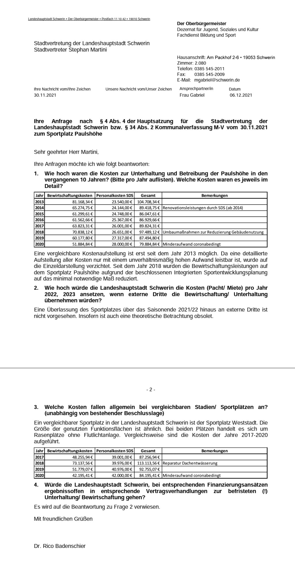 Hier für euch die Anfrage unseres Stadtvertreter Stephan Martini, nebst Antworten des Oberbürgermeisters: