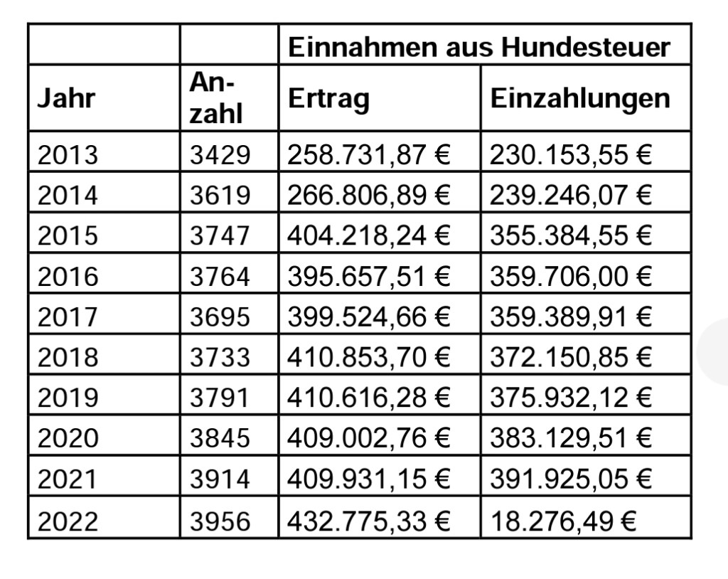 Jahren entwickelt und in welcher Höhe resultieren daraus jährliche Hundesteuereinnahmen?