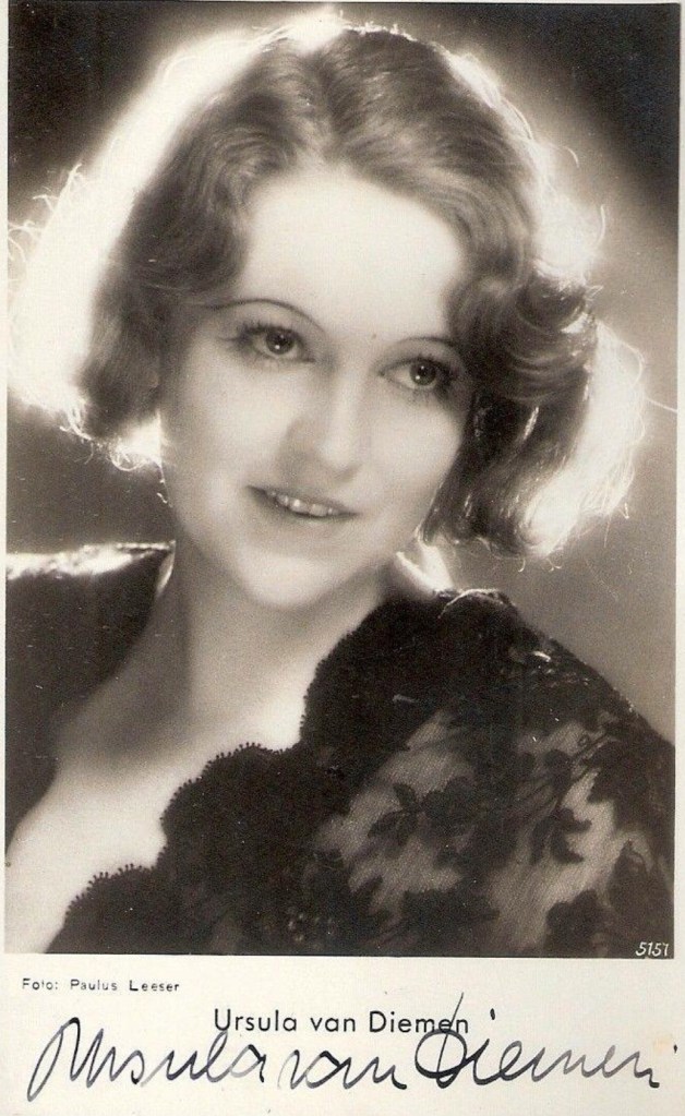 Ursula van Diemen war ca. 1930 – 33 mit dem jüdischen Filmregisseur, Fritz Lang (1890 – 1976) befreundet, der überstürzt 1933 mit ihr nach USA emigrieren wollte, jedoch konnte sie ihre beiden Töchter, die gerade in der Schule saßen, nicht Hals über Kopf verlassen …
