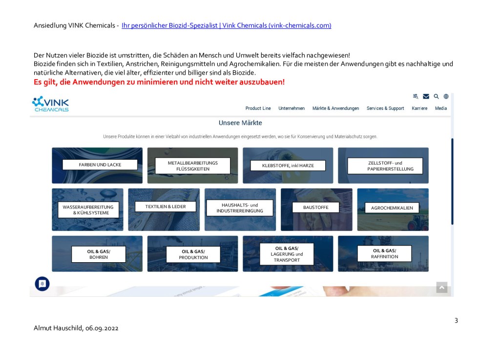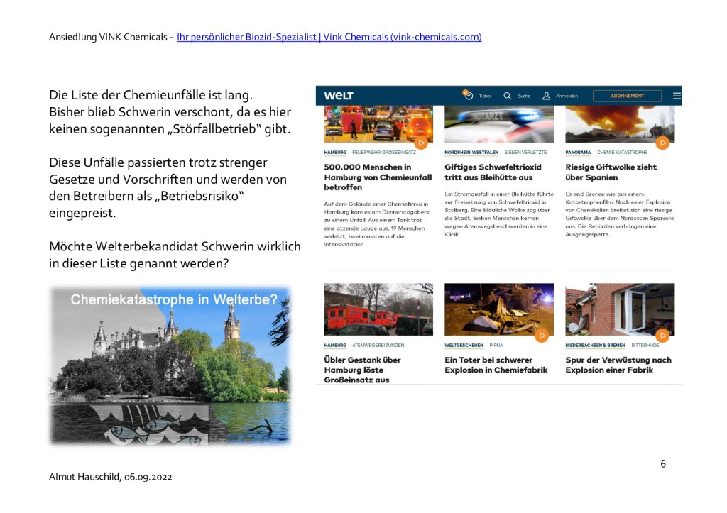 Was Vink Chemical selbst zum Thema Störfallbetrieb veröffentlichen muss: