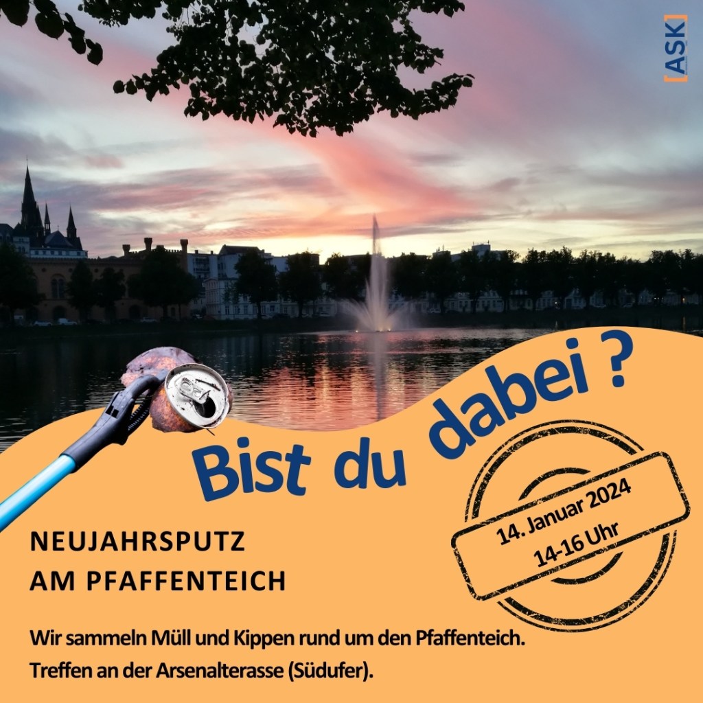 Die ASK Schwerin plant für Sonntag, den 14. Januar einen Neujahrsputz rund um dem Pfaffenteich.