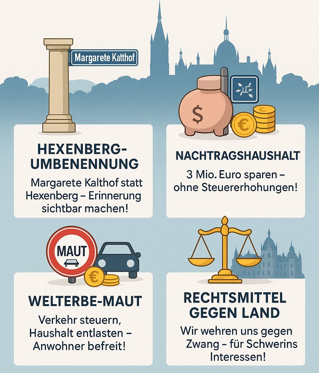 4 Anträge stelle wir für euch, – in enger Absprache mit der ask Schwerin – auf der kommenden Sitzung der Stadtvertretung.